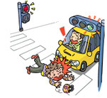 横断歩道は赤信号でも横断する歩行者がいるので、必ず、左右を確認しましょう!
