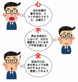 キーワードに即発され、「実は、気になっていたんですが」と、フォークリフトの事故に結びつきやすいヒヤリ・ハット事例が、たくさん出てきたという話です。