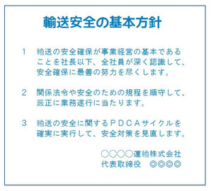 輸送の「安全方針」に決まった様式はありませんが、国土交通省の資料によると、少なくとも次にあげる内容の趣旨を盛り込んでいくことが求められています。