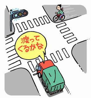 また、車を運転しているときは青信号でも油断しないで、「自転車が飛び出してくるかもしれない」「信号無視をして渡ってくるかもしれない」という危険予測意識を持って運転しましょう。