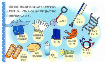降雪・積雪してから焦ることがないように、タイヤチェーンの点検やスタッドレスタイヤへの履替え、雪道用のグッズの準備などをすすめておきましょう。