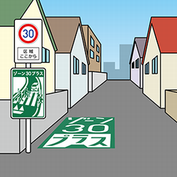 これは、歩行者等の安全を確保するために範囲(ゾーン)を定め、その範囲内の最高速度を時速30キロに定めるものです。